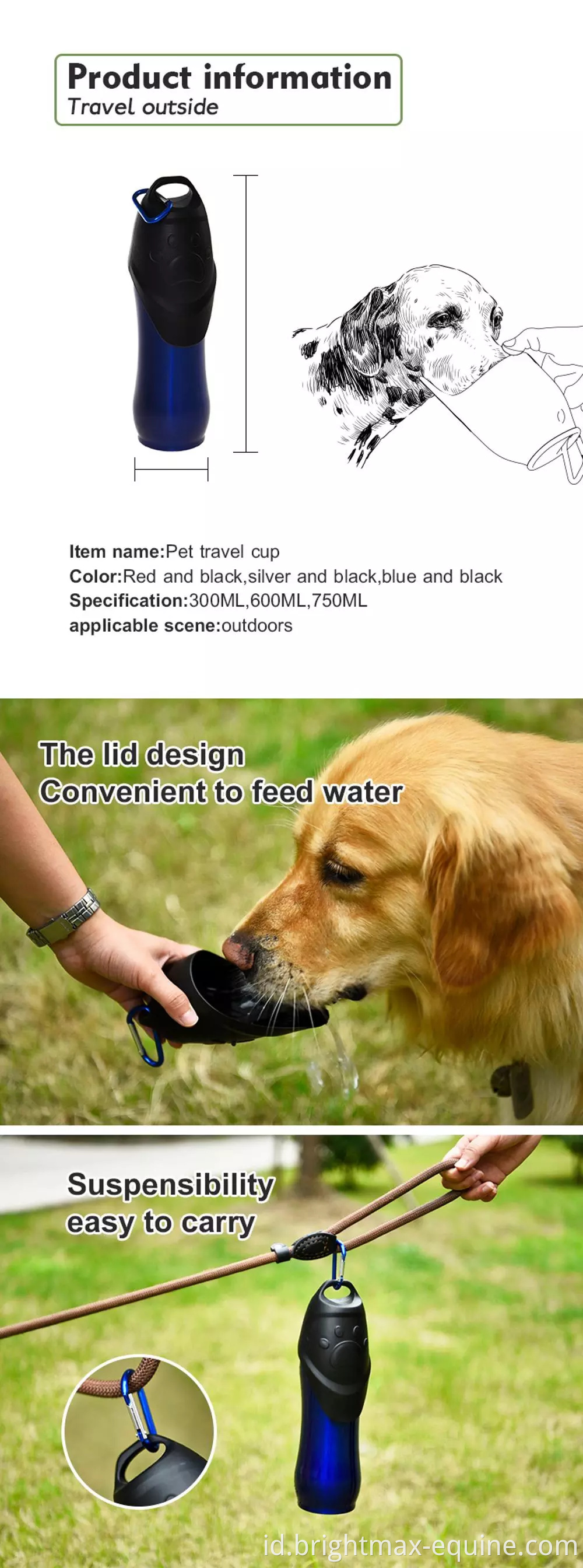 300ml / 600ml / 750ml stainless steal Pet outdoor travel water portable wink dog botol