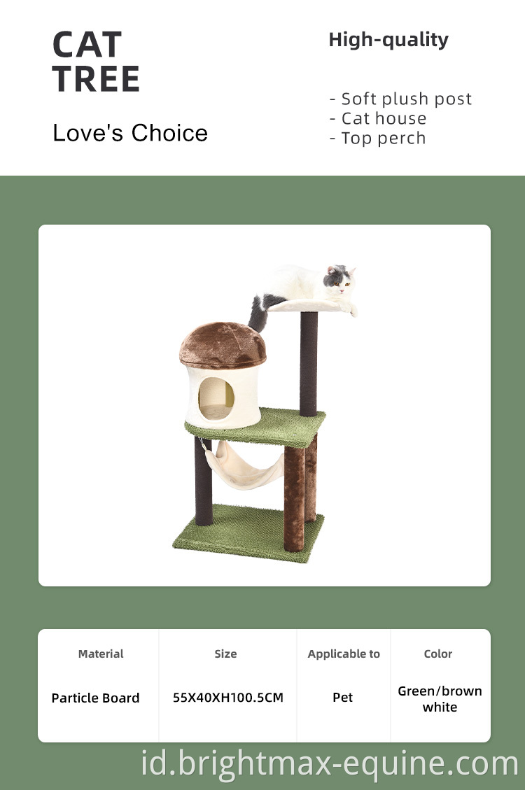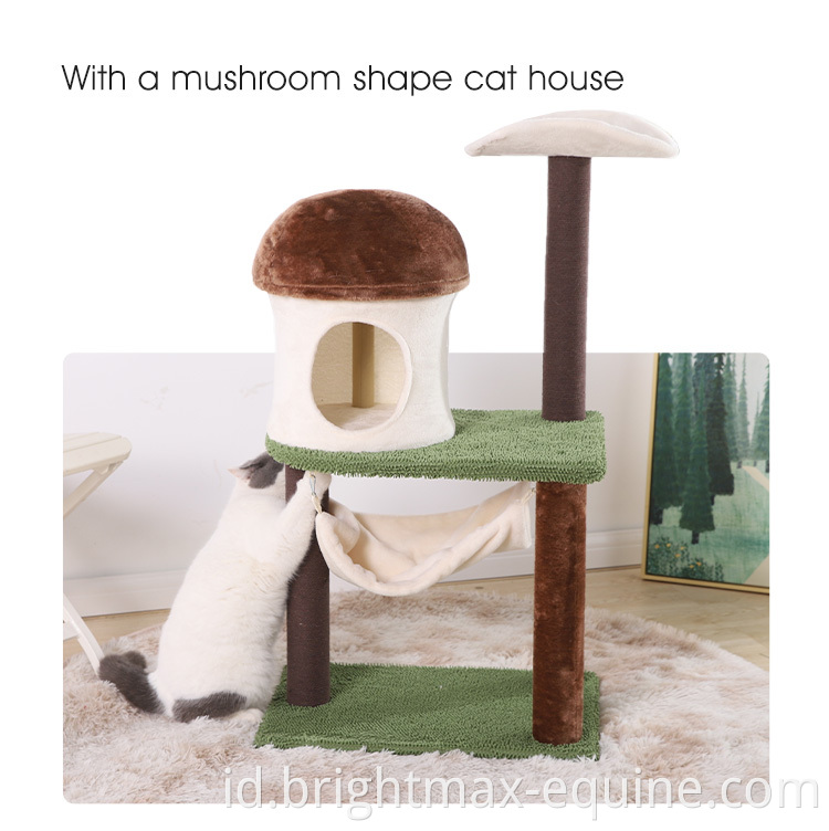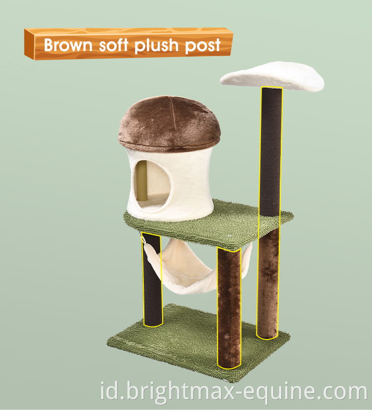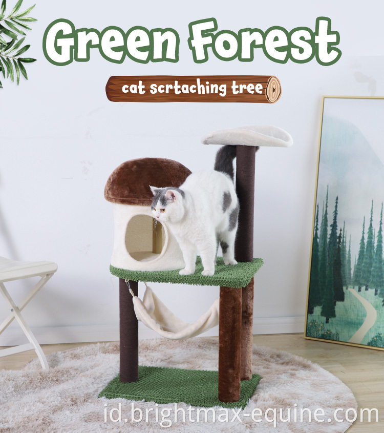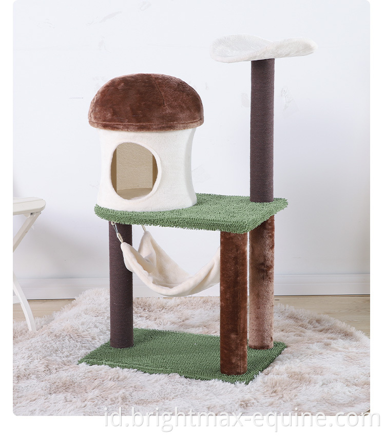 Green Forest Cat Scratching Tree Brown Soft Plush Post Mushroom shape House Cat Tree