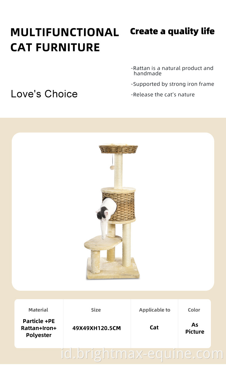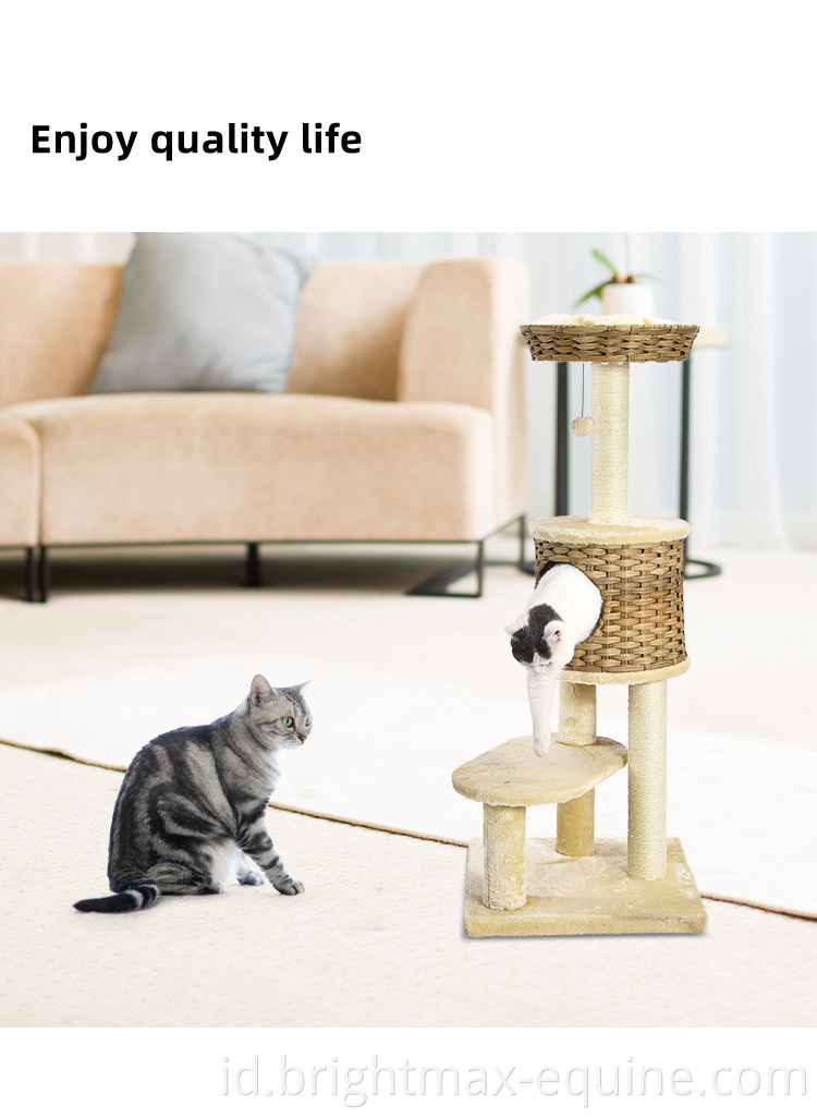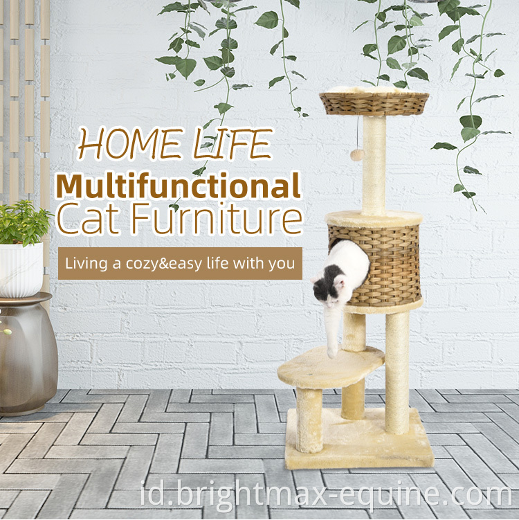 Multifungsi Ratticial Rattan Cat Furniture Plush Cover Sisal Post Cat Tree