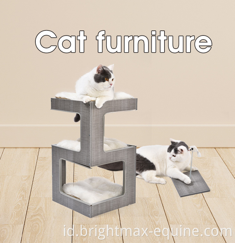 Tiga lapisan mainan musim semi furnitur pohon kucing