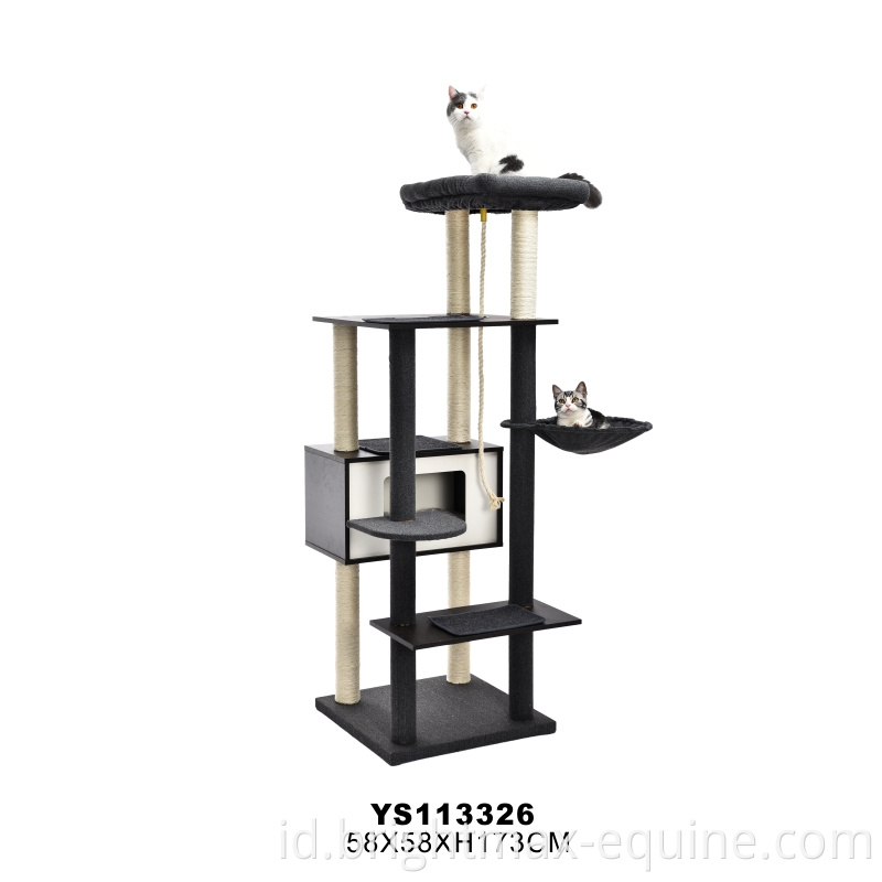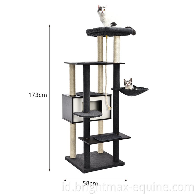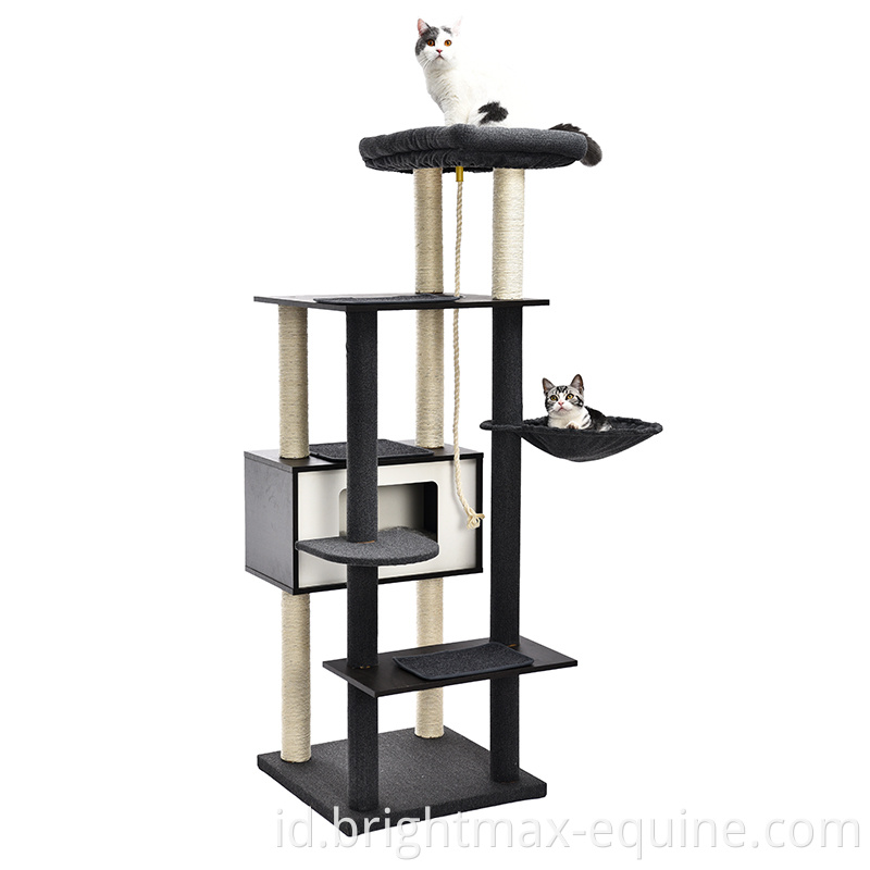 Menara kucing kayu besar modern dengan tiang goresan